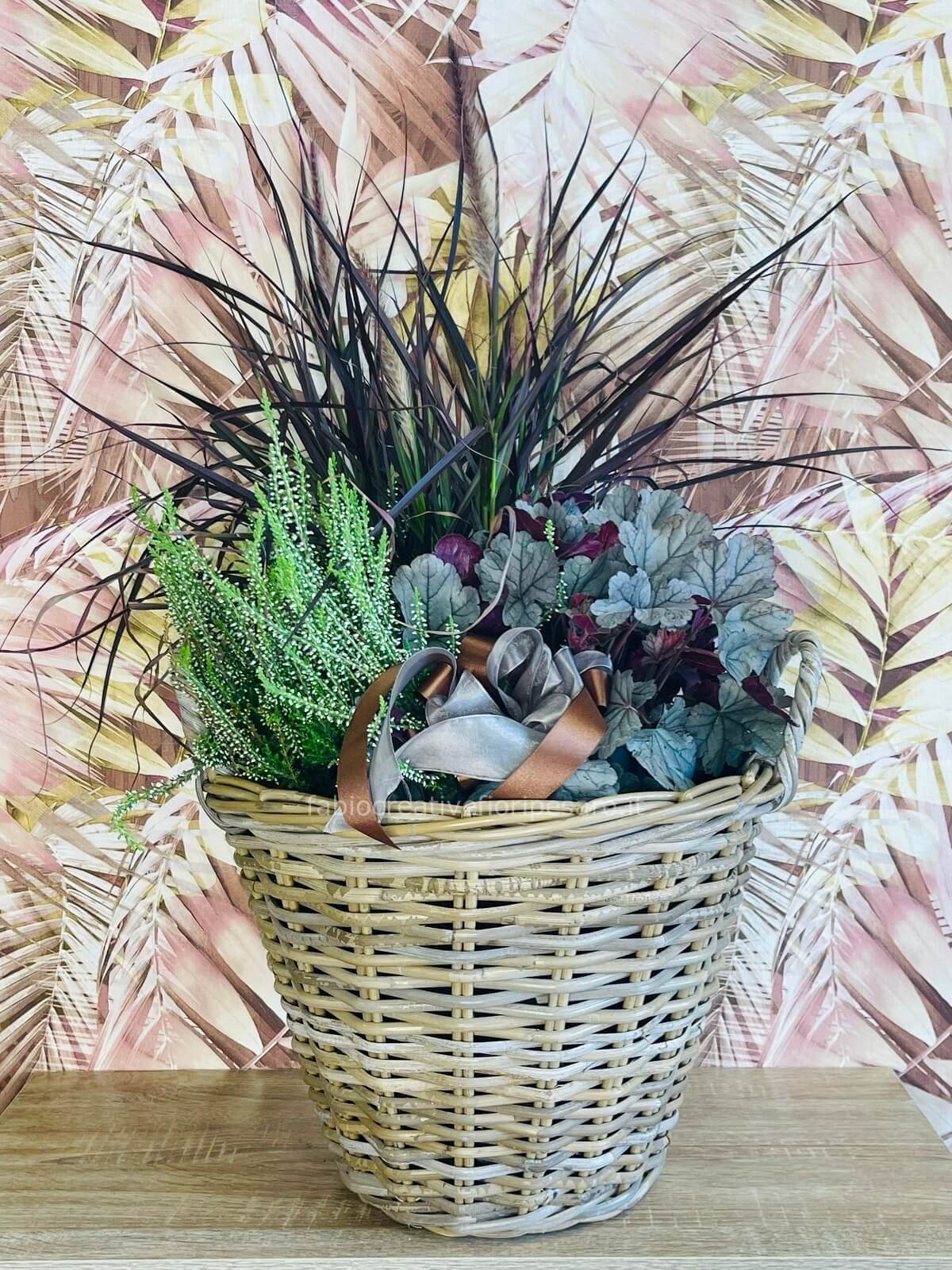 Composizione “Miracolo d’Autunno” – Mix di piante da esterno in cesto di vimini 🍂🧺