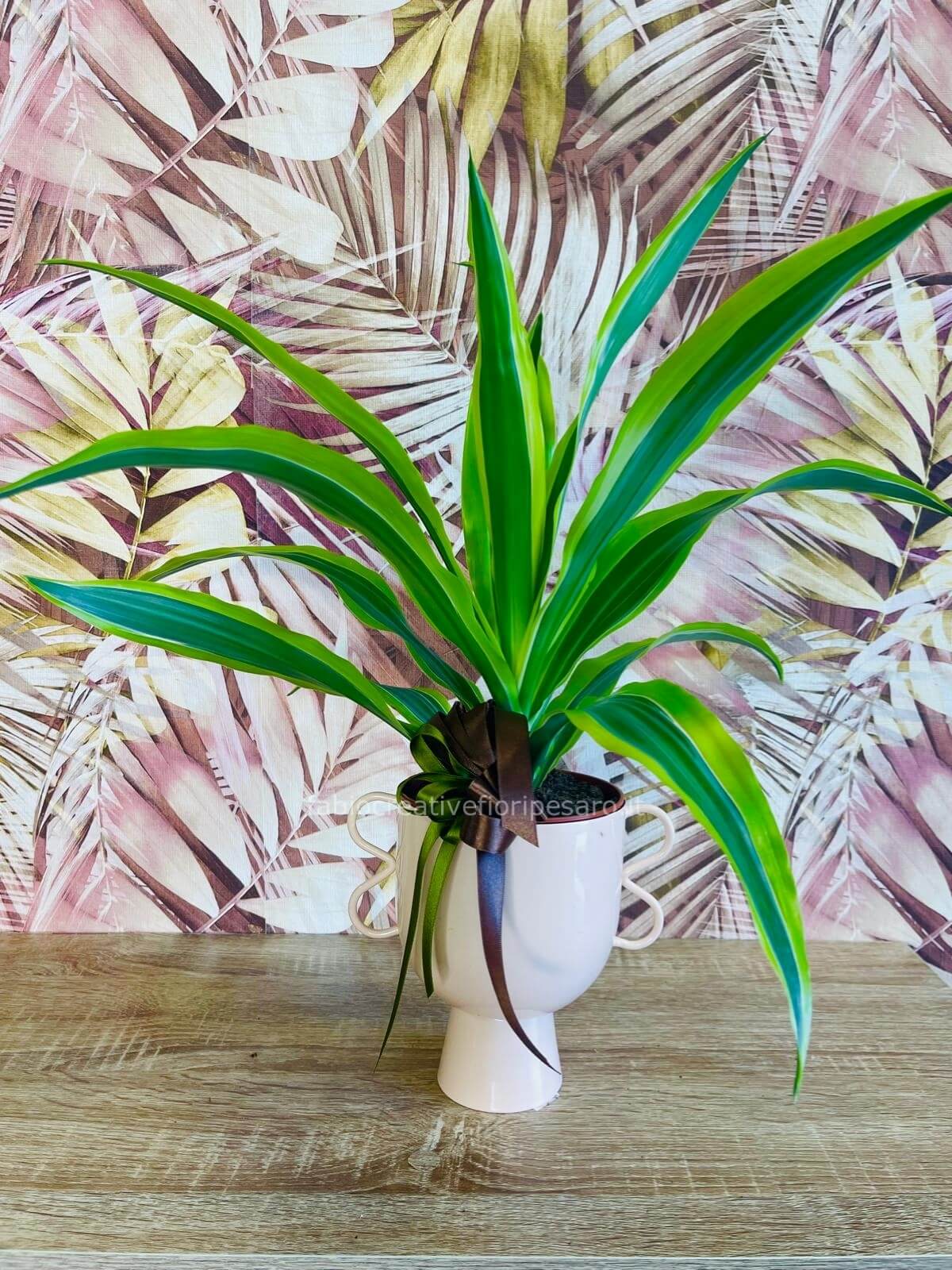 Dracaena in vaso a coppa con fiocco – Stile elegante e senza tempo 🌱🏆