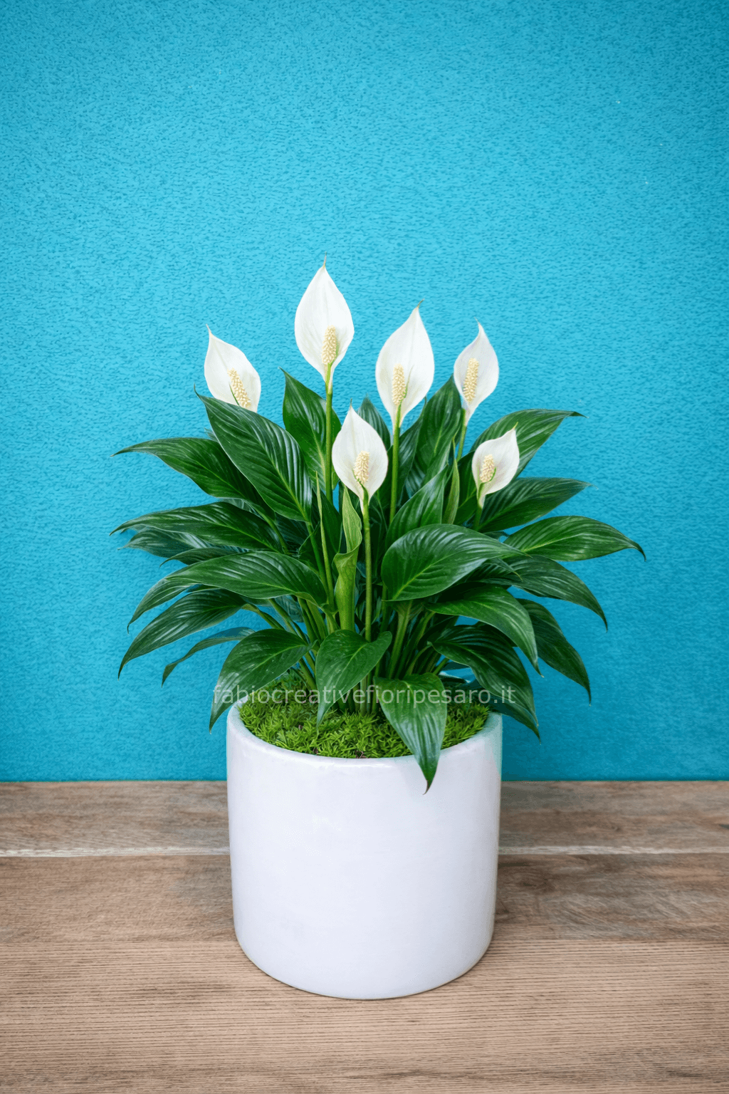 Una pianta elegante e senza tempo, apprezzata per le sue foglie verdi lucide e i raffinati fiori bianchi, simbolo di purezza e armonia. Lo Spathiphyllum è ideale per arredare con stile ambienti domestici e professionali, donando un tocco di freschezza naturale e ordine visivo.
